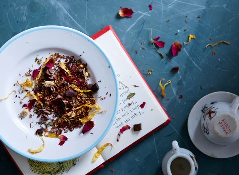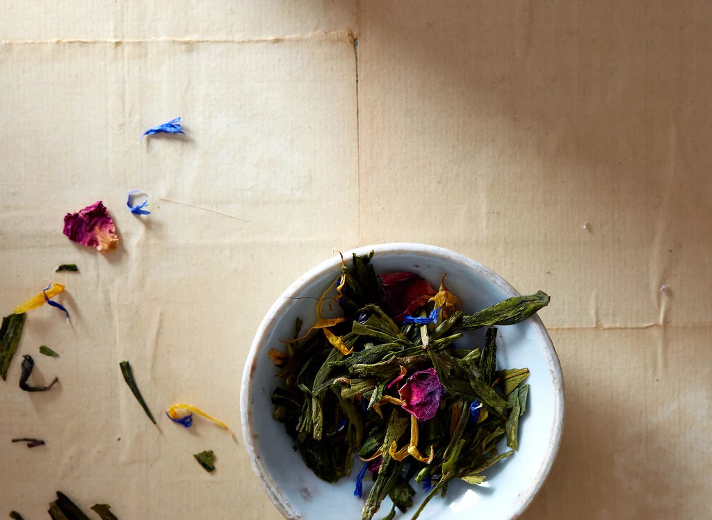 What makes it even more special is that the teas are sourced from Bellocq, a small tea atelier in Brooklyn known for its beautifully blended, hand-crafted whole-leaf teas. Each tea is thoughtfully created, like the one below—Queen’s Guard—a blend of black Ceylon tea, rose petals, lavender, and cornflower. Or there’s Étoile de l’Inde, a blend of green and jasmine tea with passionfruit, marigold, and lush rose. Even just looking at their colors seems to brighten the room.